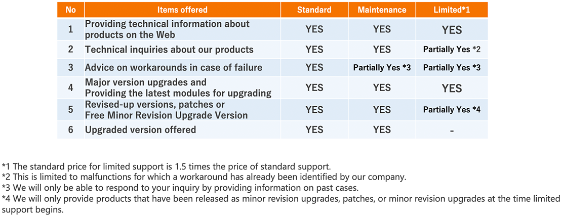 Product introduction and addition of options for development machines and nodes will continue until the end of maintenance support for the relevant level and will be sold.