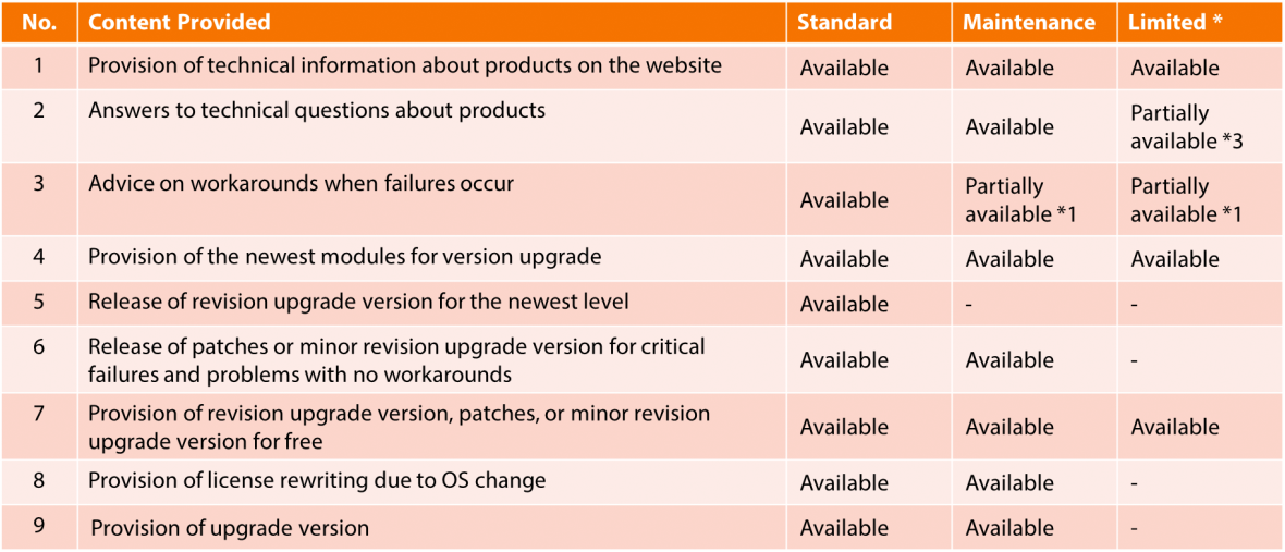 - *2 The fee of Limited Support is 1.5 times that of Standard Support.