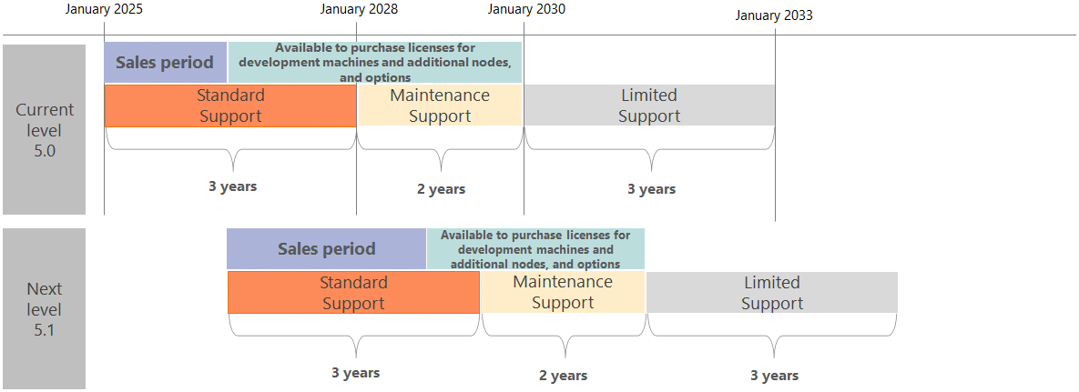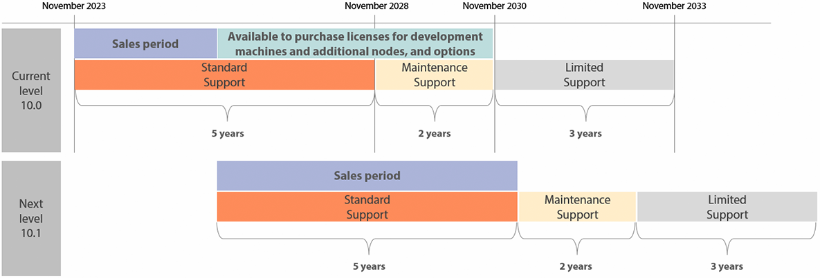 handled with the newest version of our products *1. However, if the vendor who provides the OS ends support for the OS, the OS may be removed as a supported OS as of the next revision or level upgrade without waiting for the next version upgrade. |