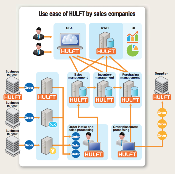 With HULFT, seamless data integration between a wide variety of business applications is possible. Transfer files between your enterprises' different locations, or with external organizations. HULFT is becoming the standard for managed file transfer (MFT).