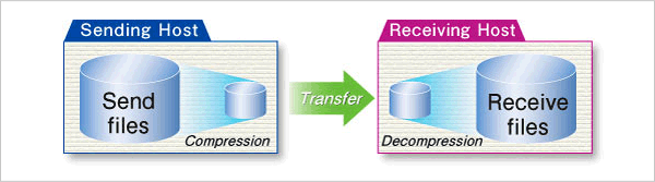 You can use a unique compression method offered by HULFT to compress data for efficient file transfers. You can use the Send Management Information to specify whether or not to compress data on a file-by-file basis.