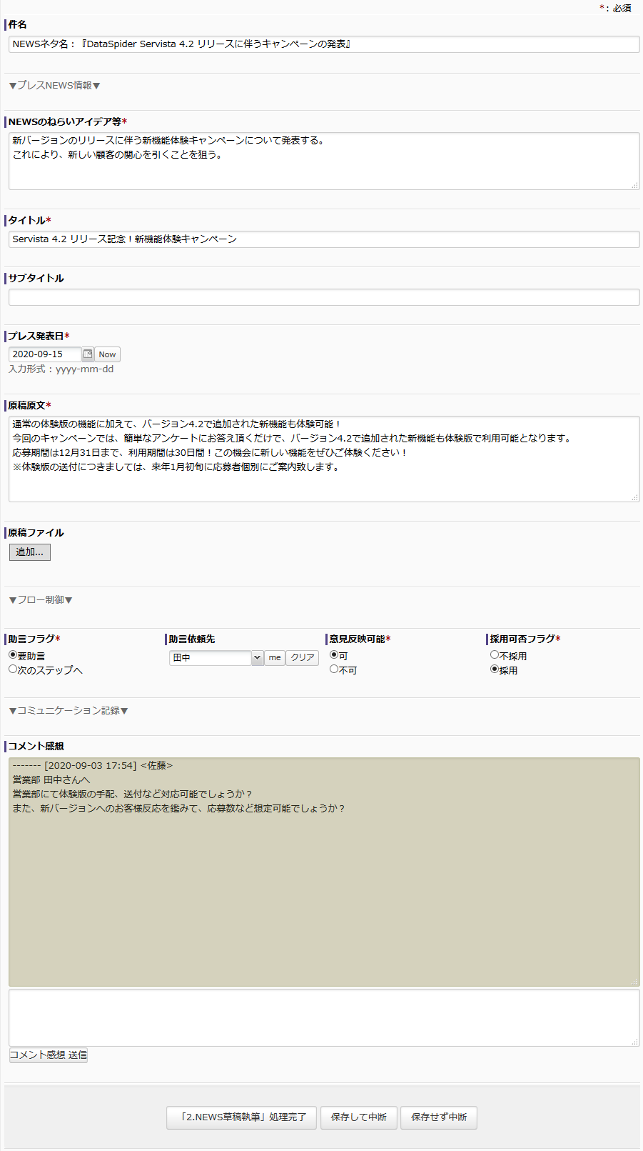 原稿の配信作業だけでなく、Webチームへの依頼や効果測定作業を忘れずに行えるようになっています。
