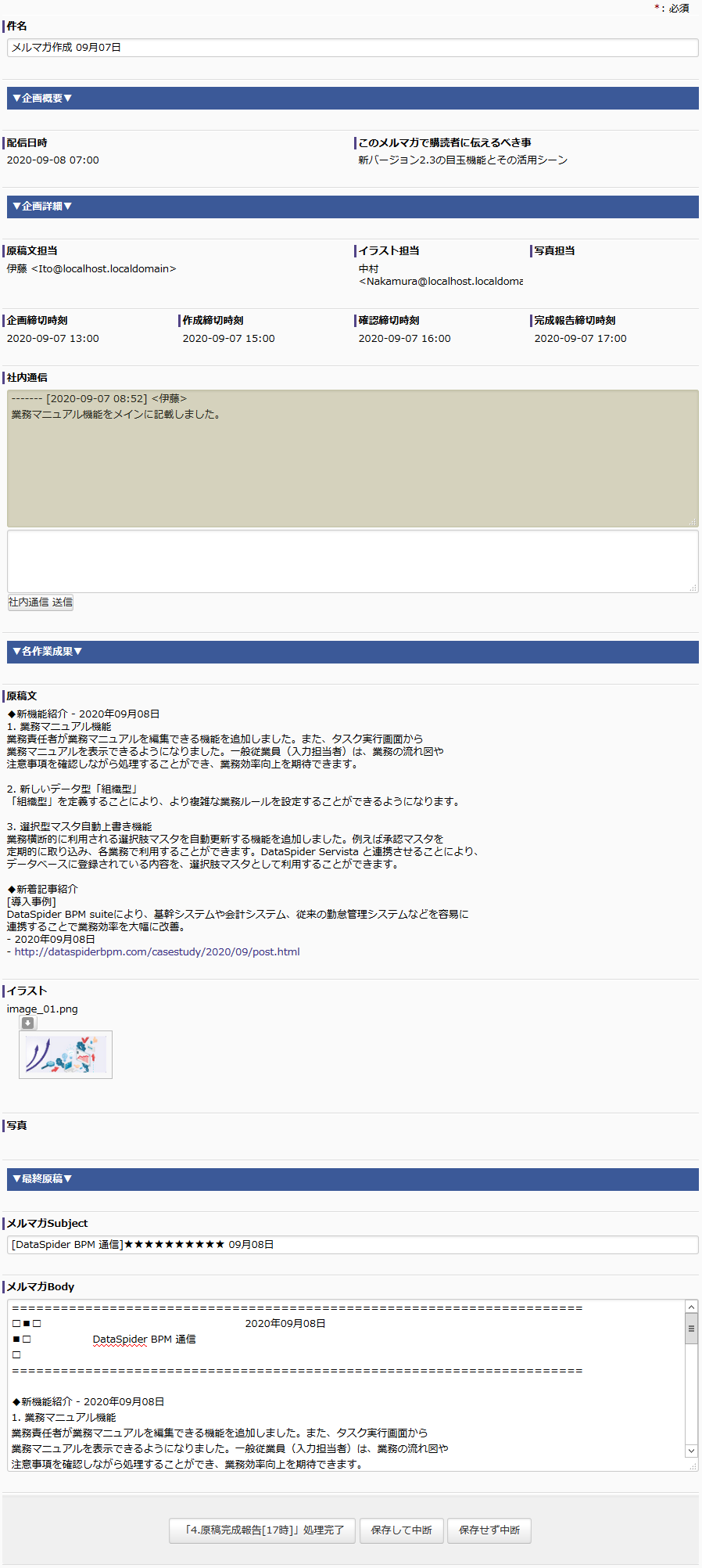 全ての確認作業がOKとなると、 最終原稿が自動生成されます(4. 原稿完成報告 [17時])。