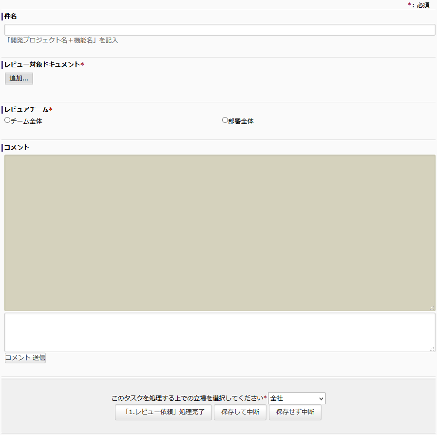 レビューの依頼は、こちらのタスクでレビュー依頼者が「終了フラグ」にチェックをつけるまで繰り返されます。