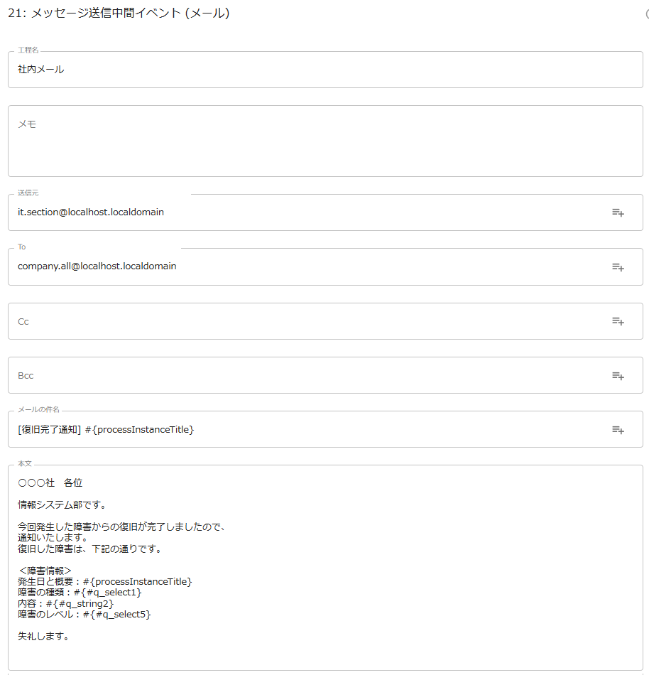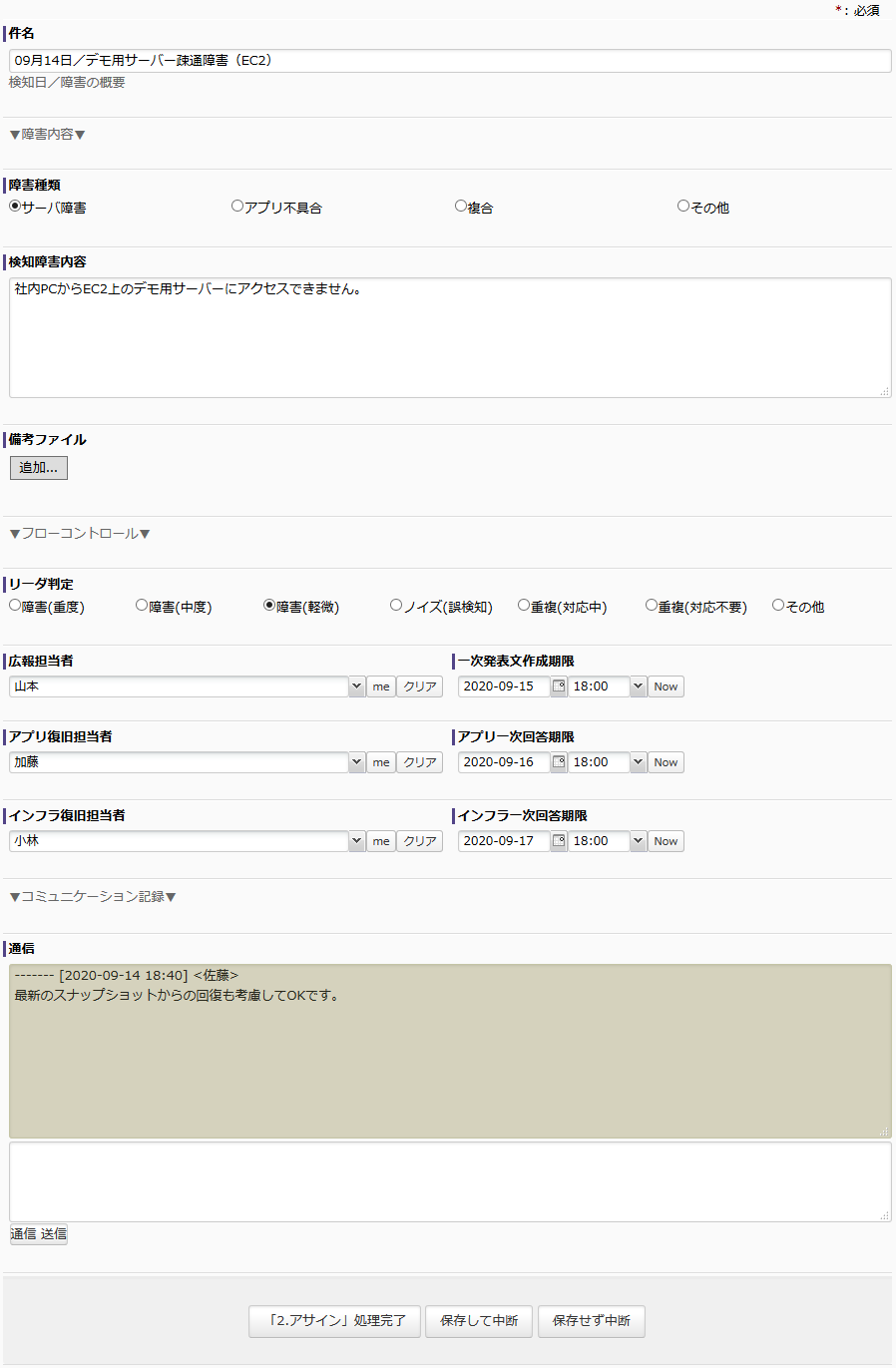 対応担当者が割り当てられると、BPMが各担当者に自動的にタスクを割り当てます。以後のそれぞれの障害対応作業もBPM上で管理されます。
