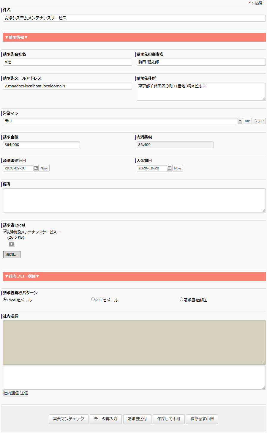 本記事のサンプルは ワークフローサンプル様の紙の請求書郵送を卒業するためのワークフロー を元にしております。
