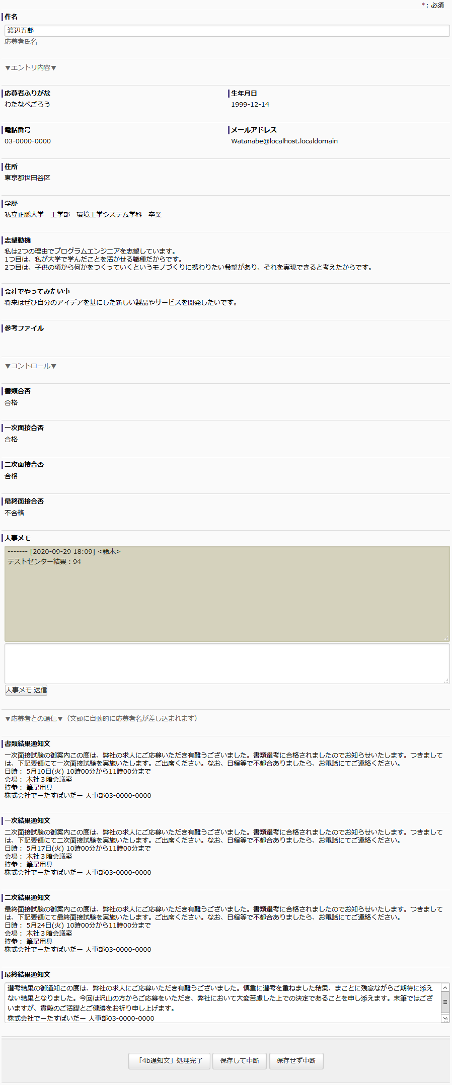 例えば、不採用通知は、それを受け取る相手の立場に立った丁寧な対応が求められます。このプロセスでは、これまでの選考過程の経緯を画面上で確認しながら、人事担当者が採用・不採用の通知文を作文できるようになっています。