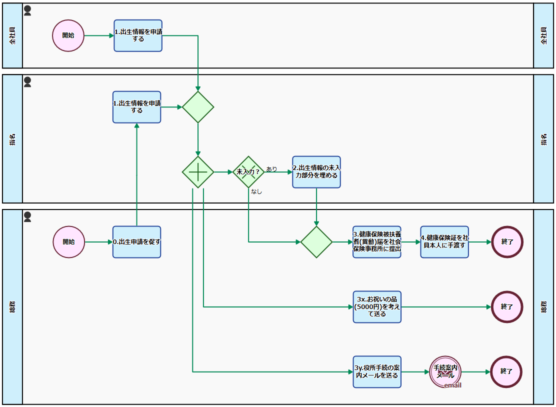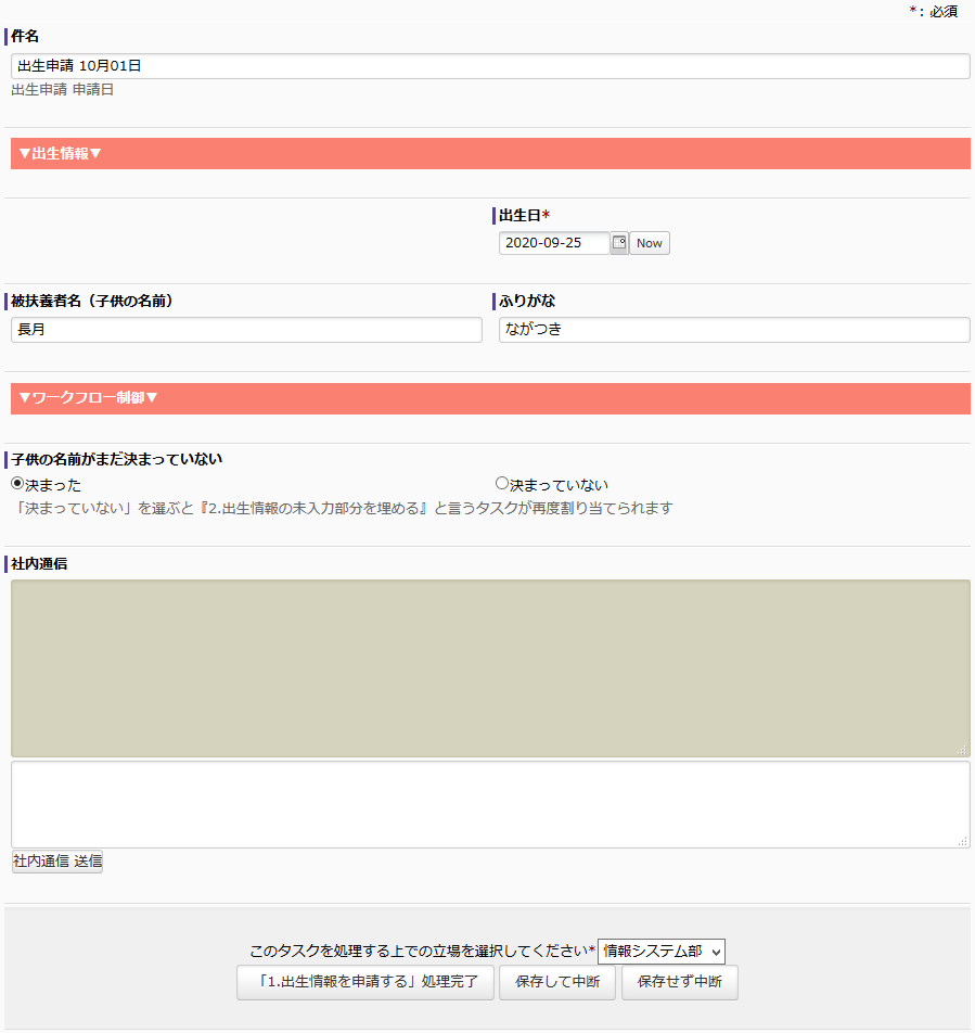 本記事のサンプルは ワークフローサンプル 様の 赤ちゃんが産まれたら、どんな手続きが必要?を元にしております。