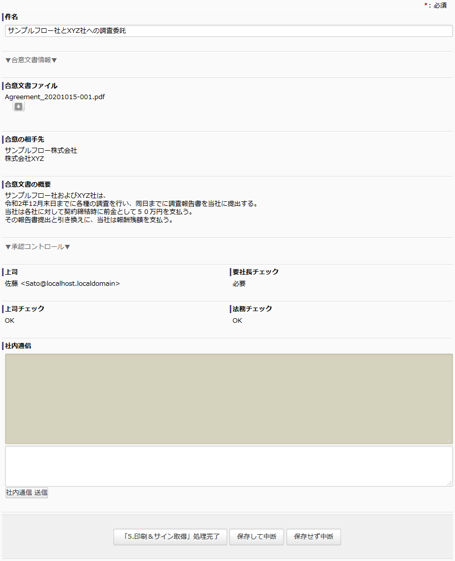 契約書は印刷製本してから社長が決裁? コンブレオを元にしております。
