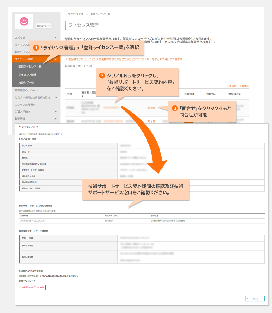 このページは技術サポートサービスの契約状況の確認方法についてご案内いたします。