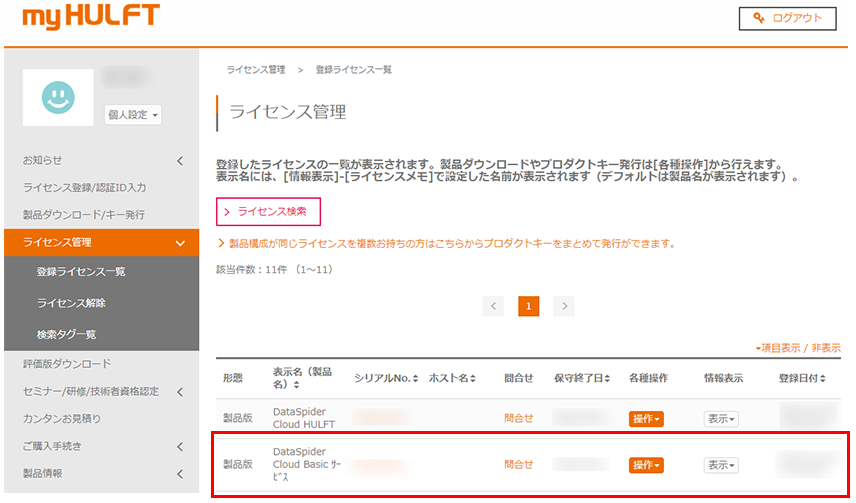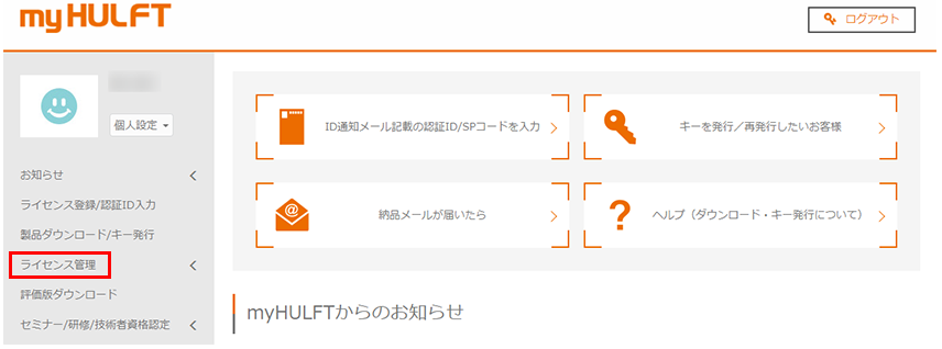 弊社ご契約のお客様は、myHULFTにログインし、登録したライセンスにより、技術サポートサービスをご利用いただくことができます。