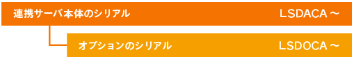 シリアル No. は連携サーバ本体に対して発行される、LSDACAから始まるシリアルと、アダプタやネットワークオプションなどに対して発行される、LSDOCAから始まるシリアルがあります。