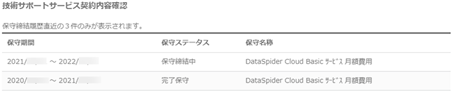 [技術サポートサービス契約内容確認]で現在弊社のサポートの保守期間やステータスもご確認いただけます。