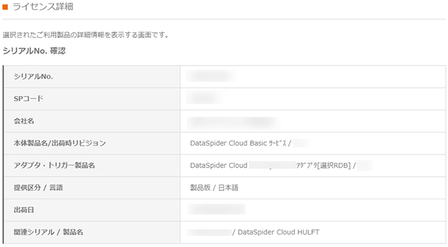 DataSpider Cloud ではご購入いただいた各種ライセンスに対して、シリアルNo.を発行しています。