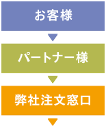 お客様からパートナー様へご注文いただきます。 パートナー様は弊社へご注文の手続きを行います。