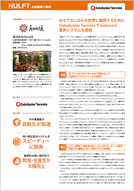 印鑑のインターネット通販でトップの実績を誇る「ハンコヤドットコム」の運営会社、株式会社AmidA(アミダ)ではEC事業の拡大だけでなく、長年のECサイト運営ノウハウを生かしたデジタルマーケティングやプラットフォームビジネスといった新たな事業領域に進出。将来は、“世界”をも視野に入れている。そうした将来の成長を見据えて、同社は、システムの最適化と、将来的なプラットフォームビジネスへの展開にも対応できるような、社内システムの構築に着手。商品管理、製造、外注、出荷といった一連の業務プロセスをクラウド型データベース「kintone」(サイボウズ)上に実装し、基幹システムや周辺システムをデータ連携ツール「DataSpider Servista」で連携させた。その狙いはどこにあったのか。経営戦略室 室長兼 マーケティング事業部 副部長の大田基樹氏とICT部サーバーチームの堺祐輔氏にお話をうかがった。