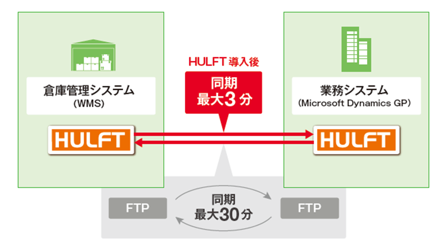 倉庫と業務システム(Microsoft Dynamics)のファイル転送基盤にHULFTを導入。FTPで最大30分要した転送処理をわずか3分に短縮し、信頼性向上と業務リスクを低減