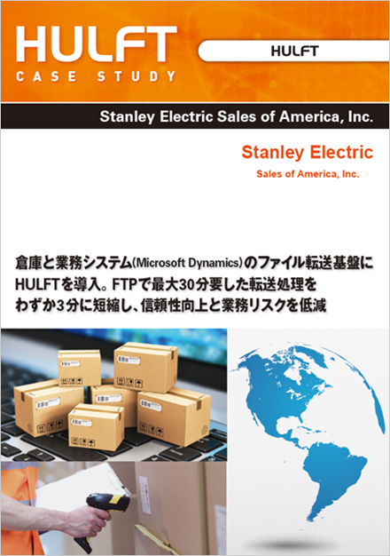 Stanley Electric Sales of America, Inc.は倉庫管理システムと業務システムをつなぐFTPの仕組みを刷新。HULFTによる新たなファイル転送基盤を実現した。これにより、従来30分かかっていたファイル転送の待ち時間が最大でも3分に短縮され、タイムリーな発注業務が可能になった。また万が一、ファイル転送にトラブルが発生した場合は、後続の転送処理を自動でストップする。誤った情報のまま発注や出荷する事態を防げるので、リスク防止につながる。転送処理がストップした段階で、即座にデータ修正を行えるので、保守作業も効率化された。今後、運用を継続していけば、工数削減によるコストメリットも期待できる。