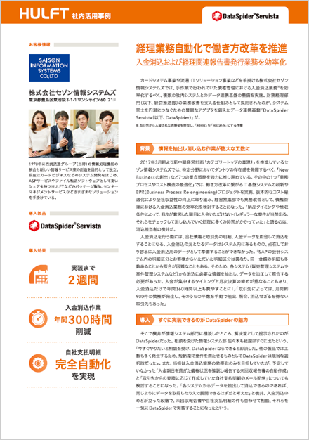 カードシステム事業や流通・ITソリューション事業などを手掛ける株式会社セゾン情報システムズ(現セゾンテクノロジー)では、手作業で行われていた債権管理における入金消込業務※を効率化するべく、複数の社内システムとのデータ連携基盤の整備を実施。財務経理部門(以下、経営推進部)の業務改善を支える仕組みとして採用されたのが、システム同士を円滑につなぐための豊富なアダプタを備えたデータ連携基盤「DataSpider Servista(以下、DataSpider)」だ。