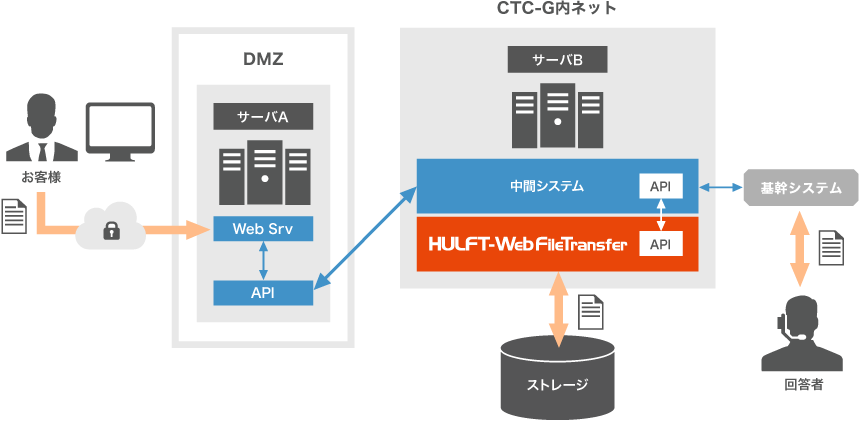 もう一つの理由は、API連携ができるミドルウェアであることだ。前述したとおり、CTCTでは保守用に自社開発のアプリケーションを利用する。このアプリケーションとの連携ができる仕様であるかどうかが、選定の鍵であった。保守契約先のお客様が日々インターフェイスとして見ているのは、保守アプリの画面である。ファイルの授受に、今とは別のシステムを導入し操作方法も変わることになれば、お客様への負担が生じてしまう。できれば、お客様にとっては今と同じ使い勝手のままシステムを更新したいと考えていたため、API連携を含めカスタマイズが可能か否かはとても重要だったのである。HULFT-WebFileTransferは、独自の仕様にカスタマイズすることが可能で、API連携も非常にスムーズに構築できる点が、高く評価された。