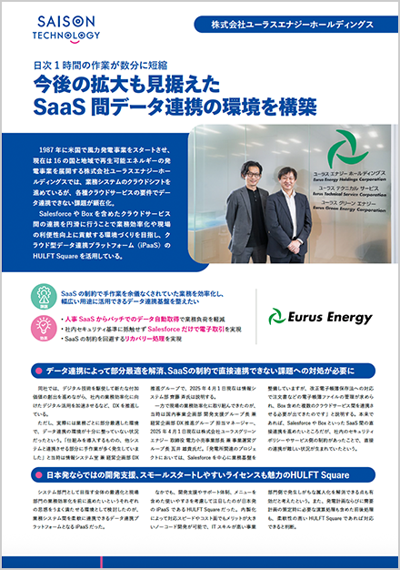 1987 年に米国で風力発電事業をスタートさせ、現在は16 の国と地域で再生可能エネルギーの発電事業を展開する株式会社ユーラスエナジーホールディングスでは、業務システムのクラウドシフトを進めているが、各種クラウドサービスの要件でデータ連携できない課題が顕在化。