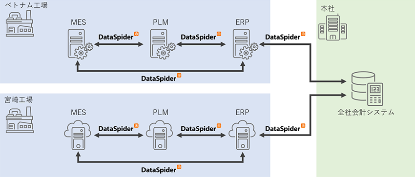 プロジェクトの第1段階として、MESと既存システム間のデータ連携について、8つのインターフェースをDataSpiderで実装。1名の担当者が実質3ヶ月ほどで完成させた。「既存システムでDataSpiderの利用経験があるメンバーだったこともあり、特に問題なく基本設計どおりのものがスムーズに完成しました。使い慣れたツールだったため『これくらいの期間で開発できるだろう』と具体的にイメージできた点も安心材料となりました(安斎氏)」