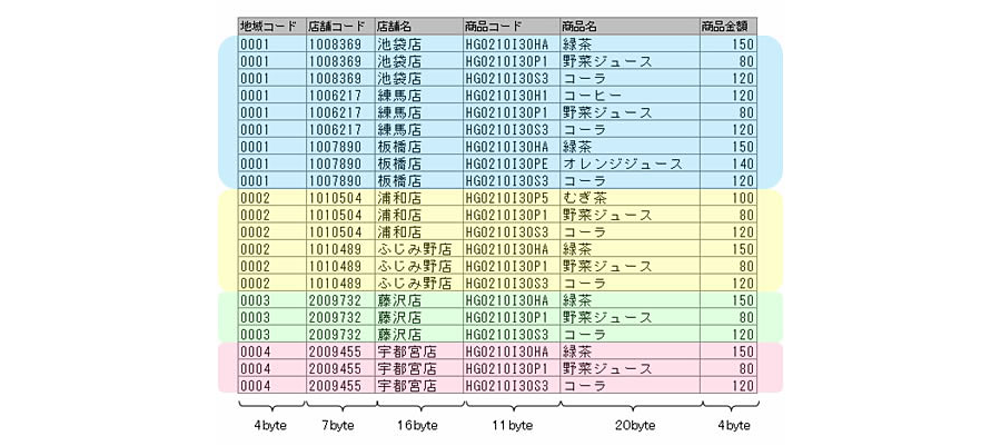 本TIPSでは、IBMメインフレームの固定長データをShift_JISのCSVデータに変換し、且つ特定の項目値から出力先を変える例を紹介します。今回は入力ファイルの「地域コード」という項目から、地域ごとに出力先を振り分けます。なお、本TIPSを利用するには、DataMagicがコンピュータにインストールされていることが条件となります。DataMagicの入手先やインストール方法などについては、別稿の「DataMagicをインストールする」を参照してください。