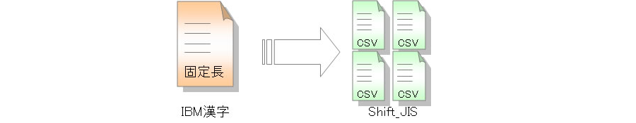 メインフレームやミッドレンジコンピュータでは、多くの場合、固定長ファイルを扱うのが一般的です。そのため業務で利用するテキストファイルはすべての行(レコード)を同じ長さにするよう、長さが足りない場合には空白文字などで埋める形をとります。一方で、オープン系システムでは、可変長の行(レコード)を扱うことができ、レコード内のフィールドを区切り文字を用いて表現するCSV形式を利用することが数多くあります。このようにメインフレームやミッドレンジコンピュータのテキストデータをオープン系システムに連携する場合、固定長データからCSVデータに変換することが必要になります。