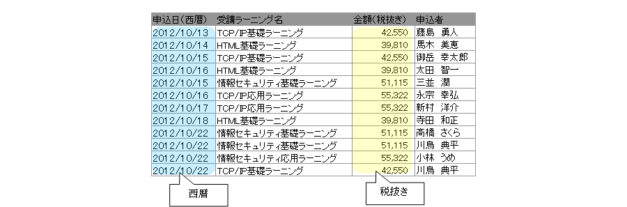 本TIPSでは、研修受講申し込みデータに含まれる日付データ及び金額データを変換する例を紹介します。なお、本TIPSを利用するには、DataMagicがコンピュータにインストールされていることが条件となります。DataMagicの入手先やインストール方法などについては、別稿の「DataMagicをインストールする」を参照してください。