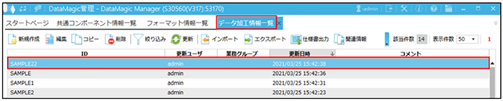 データ加工情報一覧画面