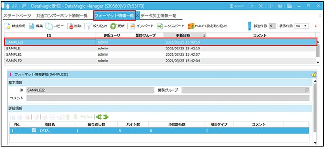 - フォーマット情報一覧画面
