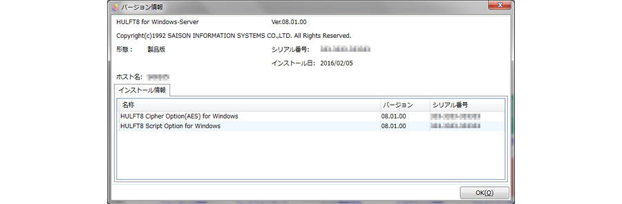 HULFTをインストール後、HULFTの管理画面から[ヘルプ]-[バージョン情報]でHULFT Scriptのライセンスを持っているか確認することができます。UNIX/Linux版の場合はutlhulversionコマンドで確認してください。