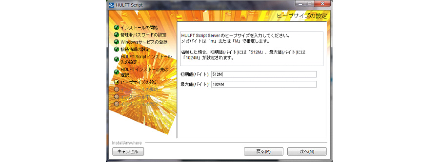 HULFT ScriptはJavaを使用します。Javaの使用するヒープサイズを設定します。導入環境に合わせて、設定を変更してください。