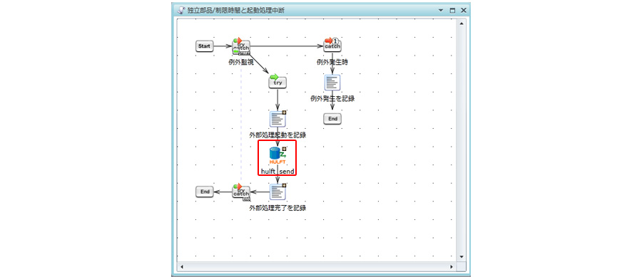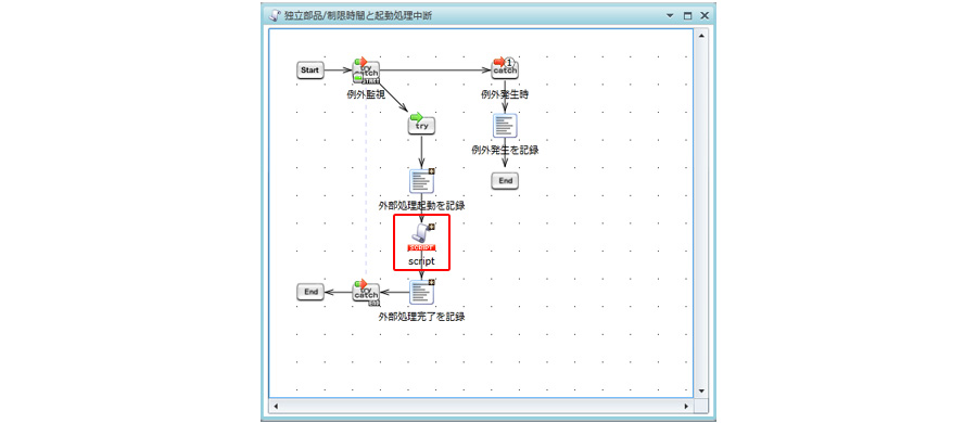 制限時間を設けて、処理を実行する場合のスクリプトです。制限時間を過ぎると例外処理を実行します。本テンプレートは[HULFT Script テンプレート基礎編]-[独立部品]-[制限時間と起動処理中断]に登録しております。解説はテンプレートの内容確認し、設定変更をして、実行の手順で紹介します。