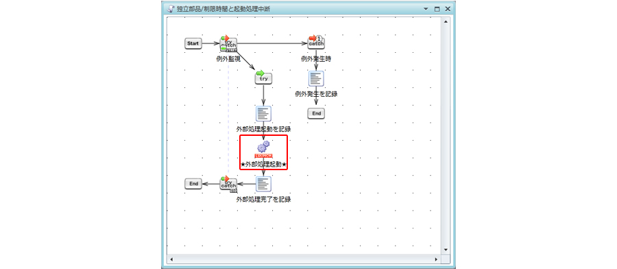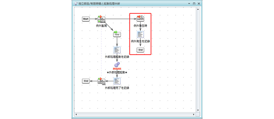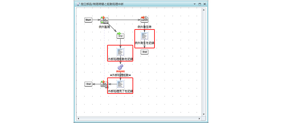 テンプレートの例外処理はログに例外発生を記録する処理しかありません。必要に応じて、1通メール送信アイコンを配置し、管理者にメールする処理を追加するなど、カスタマイズをしてください。
