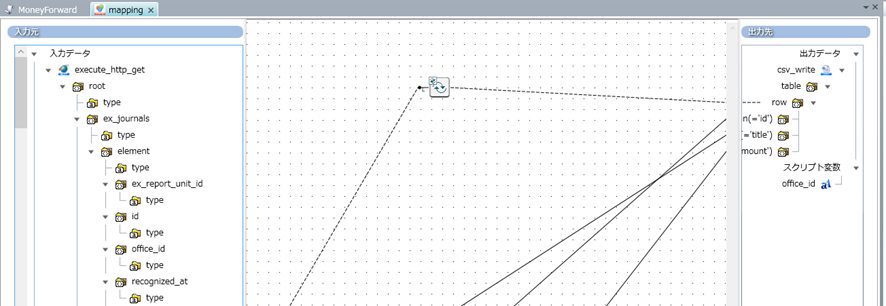 RESTコンポーネントを利用して取得したデータをマッピングして、CSVデータとしてファイルへ出力します。