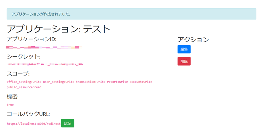 - クライアントID: MoneyForwardで作成したアプリケーションID