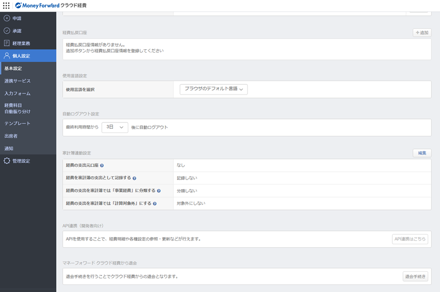 そのため、前提としましてMoneyForwardにて、API連携ができるようにアプリケーションを作成している必要があります。
