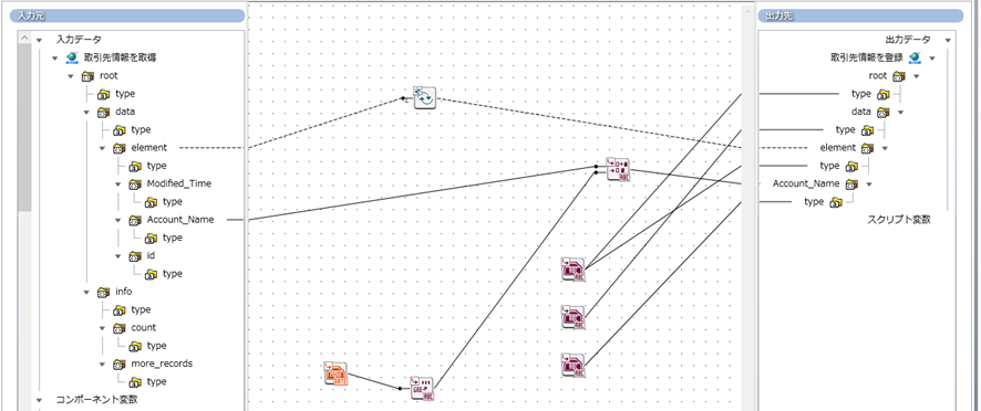 手順①で取得した取引先情報を連携先マスタへ登録・更新するため、データのマッピングを行います。
