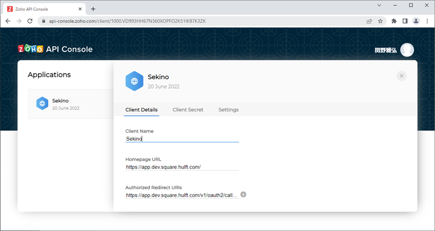 Authorized Redirect URIs: HULFT Squareが自動で設定したURL - 登録できましたら、[client_id]と[client_secret]をコピーして保存してください。