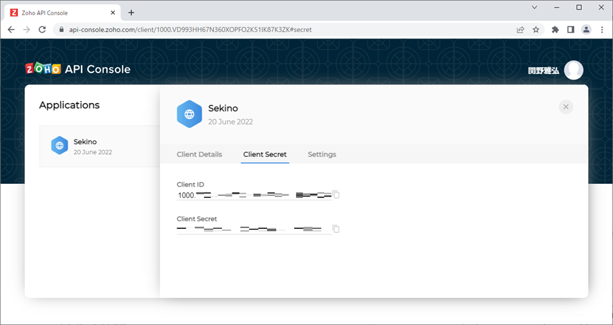 まずは、Zoho CRMから連携に必要な情報を取得していきます。