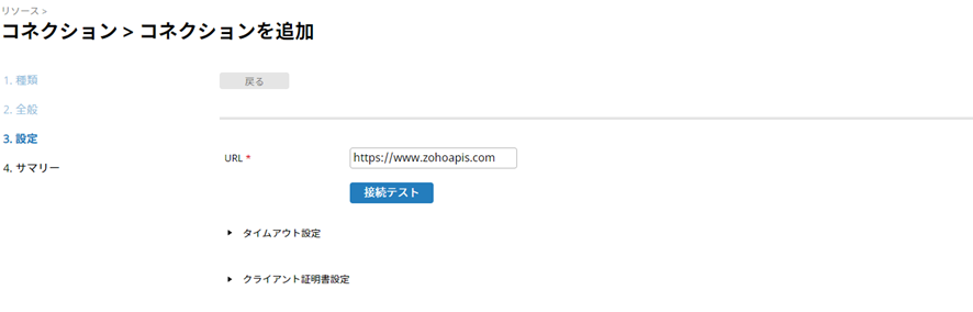 URL: [App's data centerのURL] ※画像ではhttps://www.zohoapis.com/