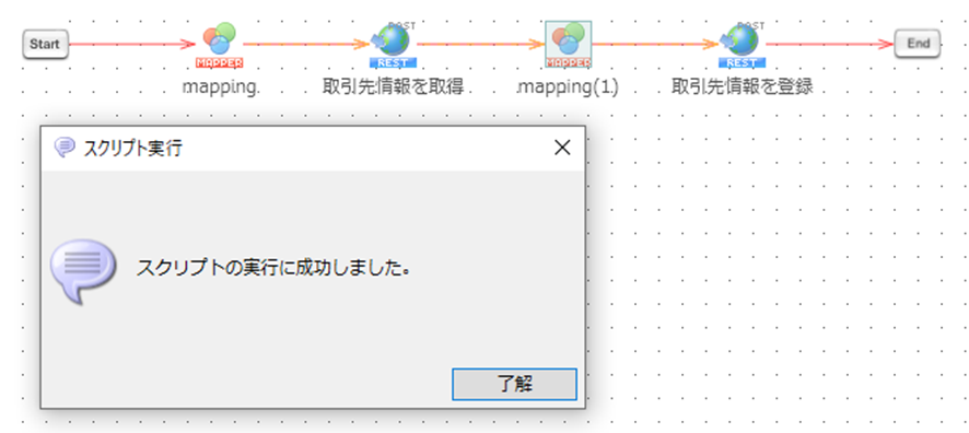 ここまで設定できましたら、正常に処理が完了することを確認します。