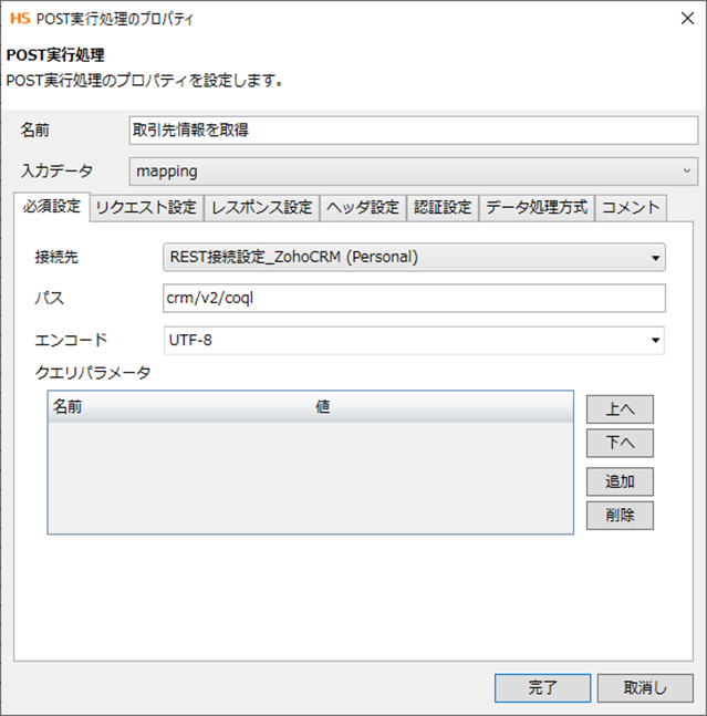 https://www.zoho.com/crm/developer/docs/api/v2/Get-Records-through-COQL-Query.html - レスポンス設定