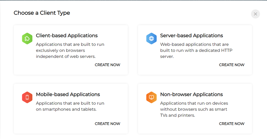 https://api-console.zoho.com/ - アクセスできましたら、server-based Applicationsを選択してください。