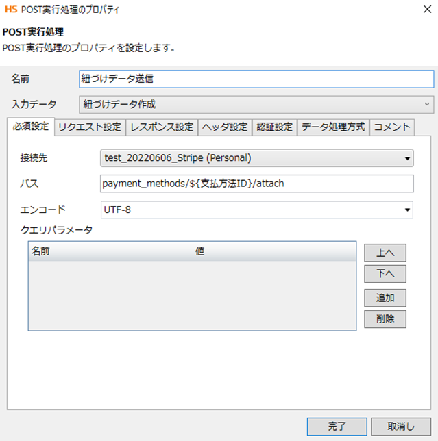以上でHULFT Squareを利用して、Stripeへの顧客アカウントの登録を行い、支払方法を紐づけました。