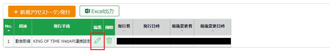 上記が終わりましたら[登録]を選択します。その後編集欄の鉛筆マークをクリックすると、アクセストークンを取得することができます。