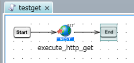 上記で作成したget実行アイコンにstartアイコンをドラッグ&ドロップし、プロセスフローを作成します。同じように、get実行アイコンをendアイコンにドラッグ&ドロップして、startからendまでのプロセスフローを完成させます。