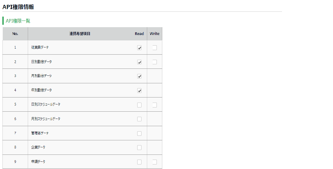 - API権限情報:このアクセストークンでアクセスできる権限を設定します。