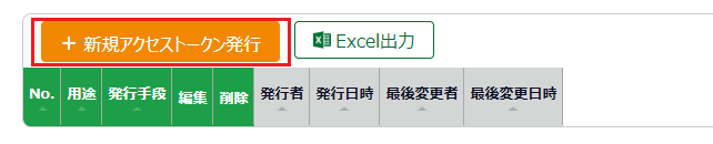 [連携設定]をクリックして、オレンジ色の[新規アクセストークン発行]をクリックすると、 APIの設定画面が表示されます。